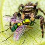 Паук-скакунчик любит носить каплю воды в качестве головного убора.
